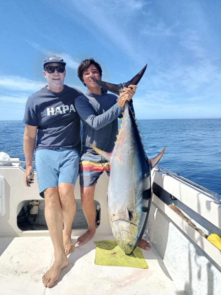 Our main highlight was the yellowfin tuna bite at Iman bank with live and dead sardines. This week, we noticed that the tuna bite would be best earlier in the morning. Most captains reported that they would only come up for an hour or two. This bite was best Monday through Friday as we saw a slower bite throughout the weekend. Monday was our best day as most of the boats came back early with over 7 tuna per boat. Most of these tuna were averaging around 20-30 pounds, though we had some big ones in the mix. The biggest tuna this week came in at 122 pounds caught on a dead sardine. We had many tuna between 70 and 100 pounds as well. We are mostly using 40 and 50# test as these tuna can be finicky. There is still a good chance of landing one of the big ones on this gear, though you will need to be extra careful, and the battle might be a long one. According to our clients, the battle on the 122 pounder was close to 2 hours. Many locals tried the afternoon, though they reported almost no bites or surface activity.