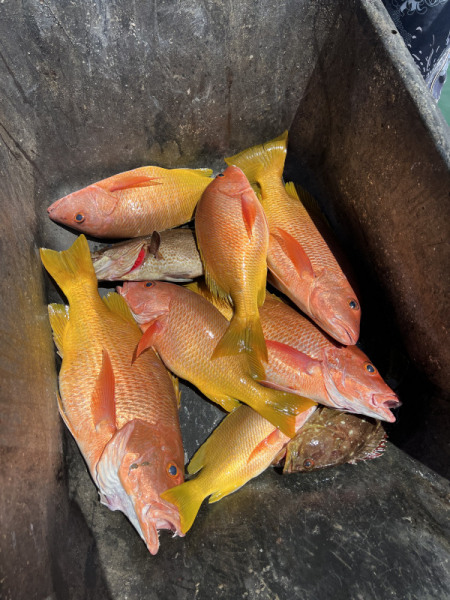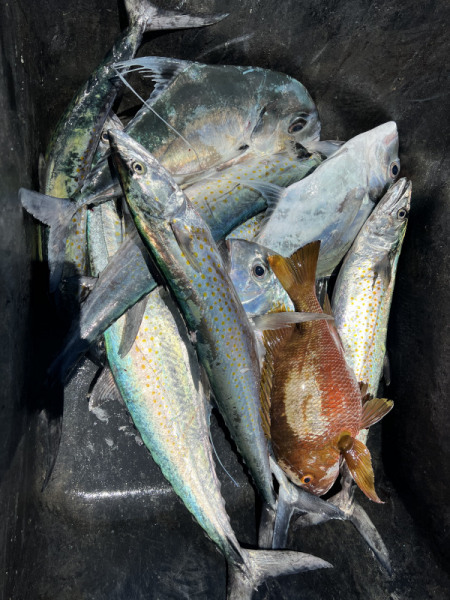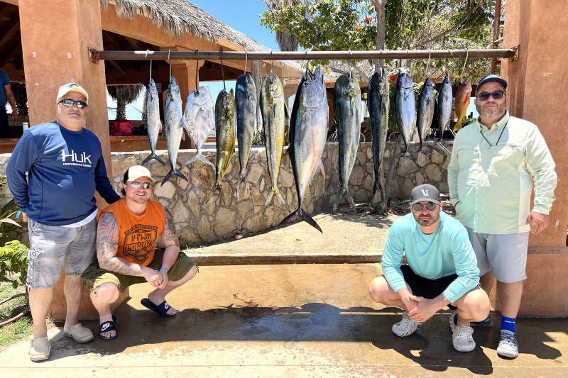 We continue to see a good variety of bottom fish from different rock structures at Cardon. Mostly using sardines, we have been able to catch yellow snapper, grouper, amberjack, sierra, and African pompano. A few grouper and amberjack were landed on jigs as well. The handful of dorado that we caught this week, came from inshore while fishing for Roosterfish. Small schools of dorado have been spotted closer to shore, most of them averaging around 10-12 pounds.