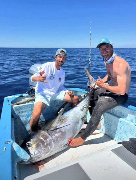 The tuna bite was consistent throughout most of the week. Thursday, Friday, and Saturday were the best days as we saw many fish in the 100–150-pound club. The biggest tuna caught this week was just shy of 200 pounds. This fish was hooked on 50# test, taking the team almost 3 hours to land. Most of the tuna action is coming from live and dead sardines at Iman and San Luis Banks. A few tuna have been hooked on strips of squid.