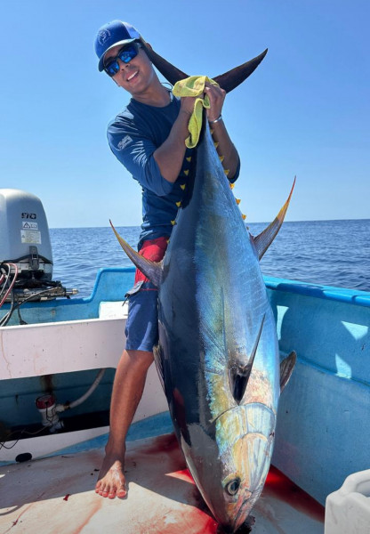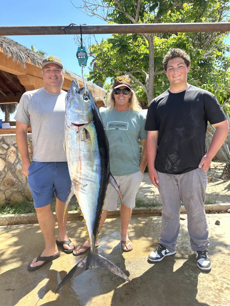 This week, we started to see bigger tuna in the area of San Luis. Most of the tuna caught in that area were 100+ pounds. Not a wide-open bite, though there is a good chance of hooking into one. Some boats reported hooking up to 3 in one day (6-7 charter). Most of the tuna were hooked on strips of squid, a few on dead sardines. We are still seeing a few football tuna in the areas of San Luis and Iman, though the numbers are significantly down compared to the last few months. A few nice dorado were also caught while drifting dead sardines and squid for tuna.