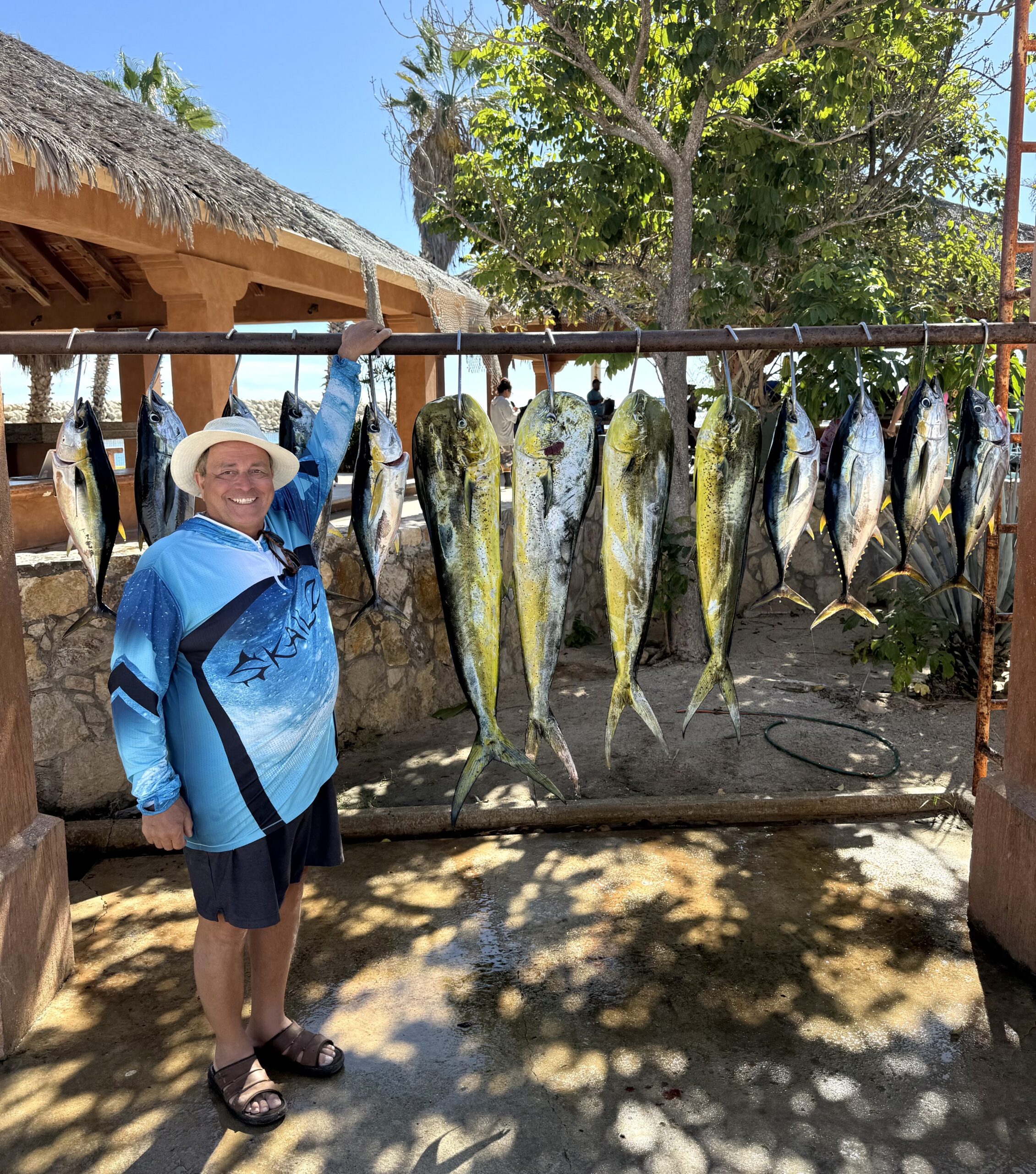 Closer to shore, throughout the areas of Punta Gorda, Cardon, and La Fortuna, we continue to see good yellowfin tuna and dorado action. Most boats that focused on tuna were able to catch their limits. Most of these tuna are averaging 5 to 8 pounds, with an occasional 30-40 pounder in the mix. For bait, we used live sardines, caballitos, and strips of squid. Sardines, as usual, worked best. We had a good sardine supply throughout Secrets and Marriot Hotel shoreline. Some days, captains reported getting full tanks of sardines (good size too!) for the regular $30 rate (reminded them of the old days). Towards the end of the week, we notice the supply started to dip again.