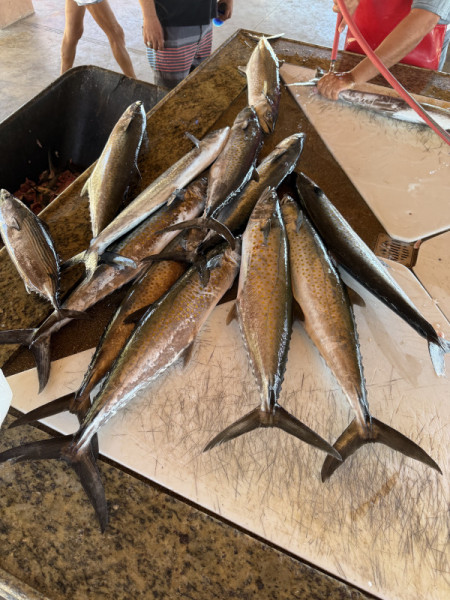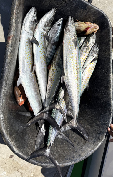 We had plenty of action at Palmilla Point, Cerro Colorado, and The Westin. On most days, our boats were able to limit on Sierra (Spanish Mackerel). This week, we had a school of quality size Sierras come in as compared to previous weeks where they were running small (2-3 pounds). Most of them were averaging 5-7 pounds, and a handful of them closer to 10 pounds. Fun to fish for these fish with light tackle. We are drifting dead sardines for these Sierras as we continue to see a low supply of live sardines. While drifting dead sardines, we also saw a handful of small yellowtail, snapper, grouper, and triggerfish. A few boats also tried jigging in 120-140 ft of water at Palmilla point. Not a lot of action on the jigs, though we did see a few nice amberjack, grouper, and white bonita.