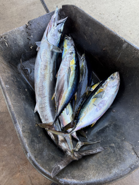 Early in the week, our fleet focused on Vinorama and San Luis area. We saw a consistent tuna bite, though some days big skipjack schools would take over the area. Most of the yellowfin we caught were on the smaller side, between 5 and 10 pounds. We did see 5 tuna in the range of 45 to 80 pounds coming from this area. For bait, live/dead sardines and strips of squid were the go-to. We also saw a few small dorado in the mix. We only saw a handful of wahoo at the fillet table this week. We had boats specifically try for wahoo, though most of them were not successful. On Wednesday, one boat did land 3 wahoo covering the grounds from Vinorama to 25 (no other boats caught wahoo this day).
