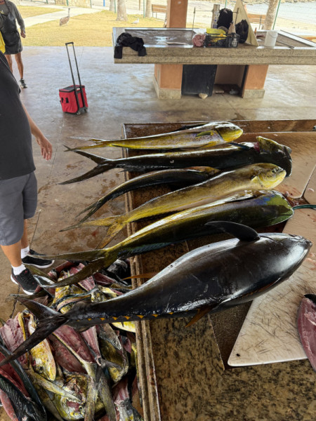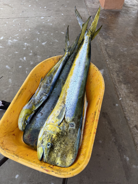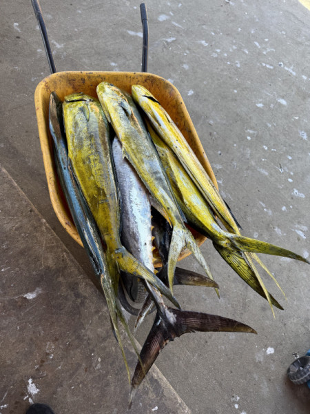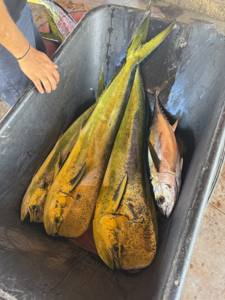 Through the fishing grounds of Iman, La Fortuna, Cardon, 25, and Punta Gorda we are seeing nice sized dorado. For bait, we are using live caballito, sardines, and ballyhoo. Some of them were also hooked on lures and feathers.